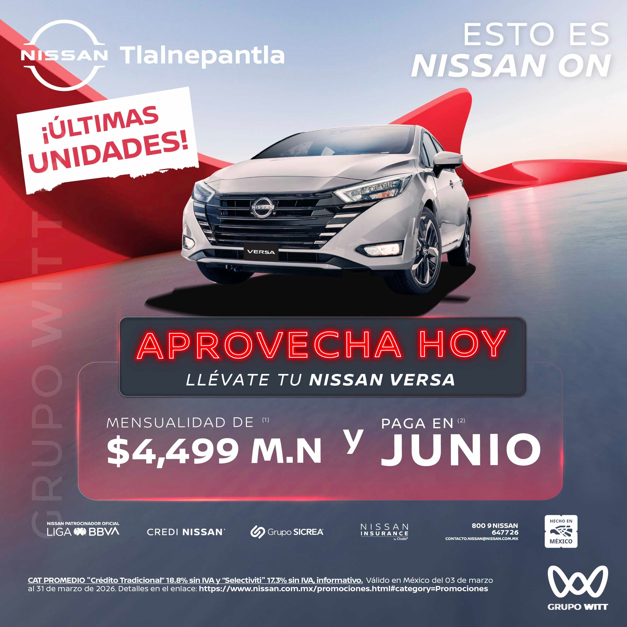 CAT PROMEDIO "Crédito Tradicional" 18.8% sin IVA y "Selectiviti" 17.3% sin IVA, informativo. Válido en México del 03 de marzo al 31 de marzo de 2026. Detalles en el enlace: https://www.nissan.com.mx/promociones.html#category=Promociones