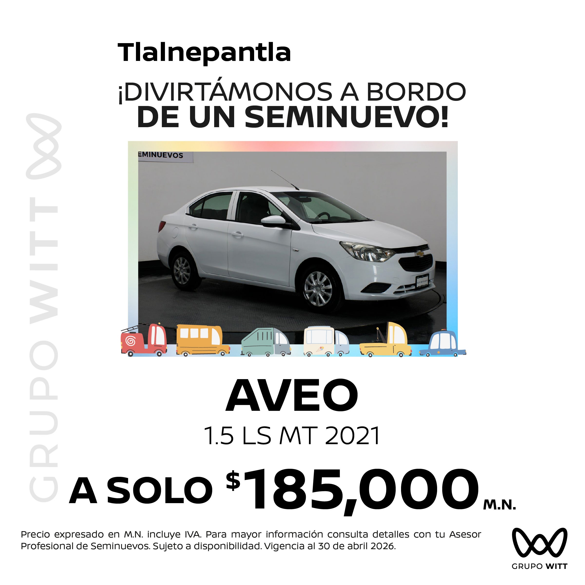 Precio expresado en M.N. incluye IVA. Para mayor información consulta detalles con tu Asesor Profesional de Seminuevos. Sujeto a disponibilidad. Vigencia al 30 de abril 2026.