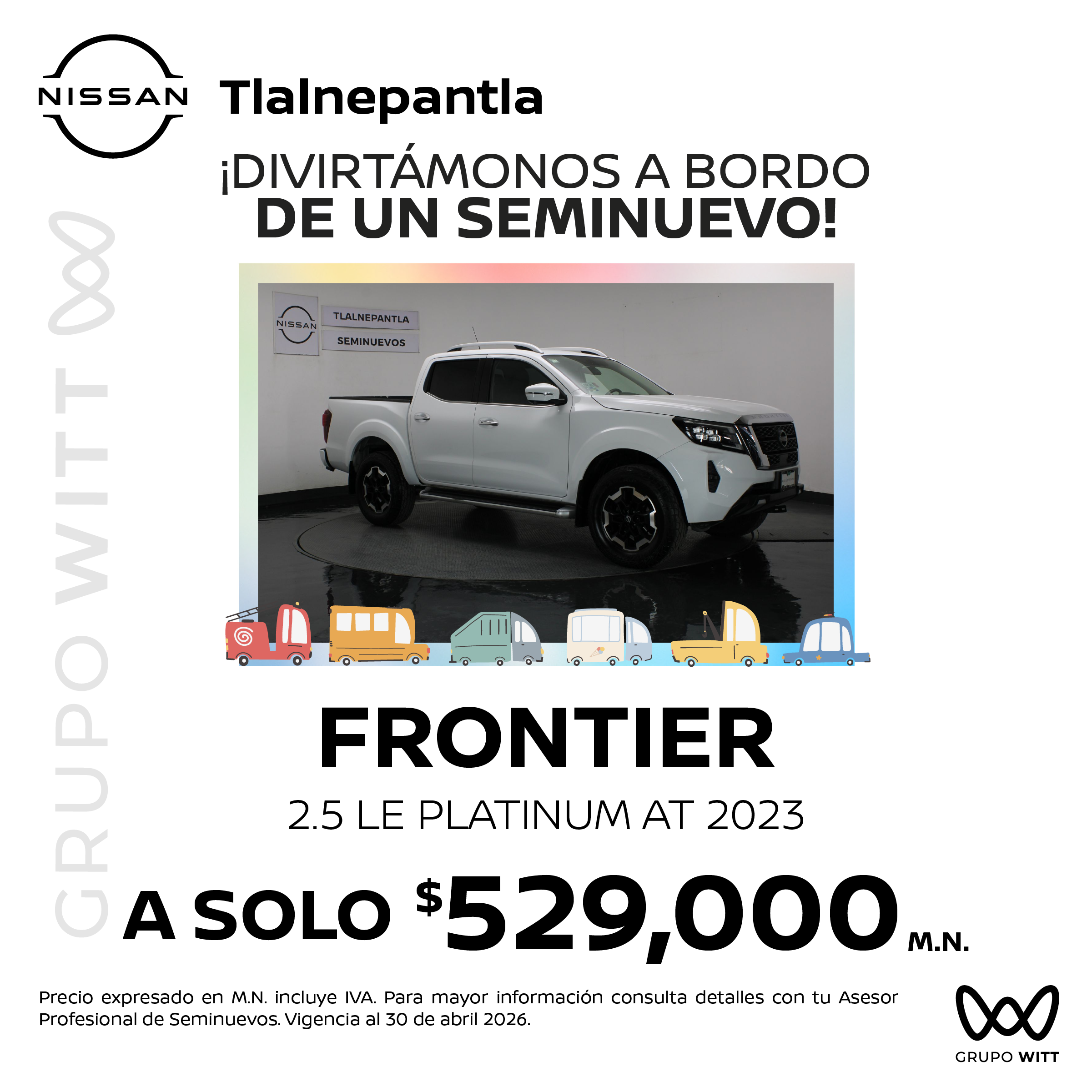 Precio expresado en M.N. incluye IVA. Para mayor información consulta detalles con tu Asesor Profesional de Seminuevos. Vigencia al 30 de abril 2026.