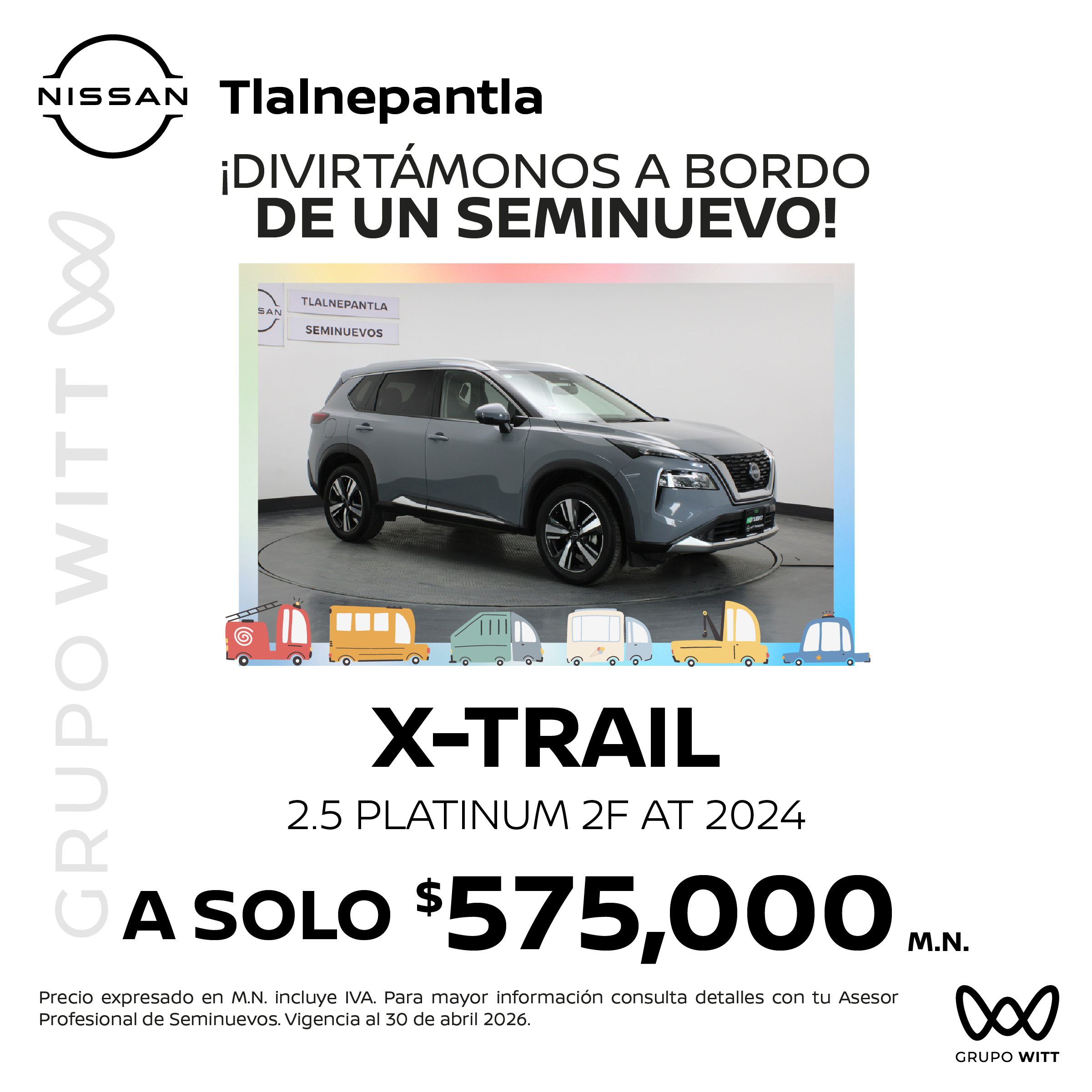 Precio expresado en M.N. incluye IVA. Para mayor información consulta detalles con tu Asesor Profesional de Seminuevos. Vigencia al 30 de abril 2026.